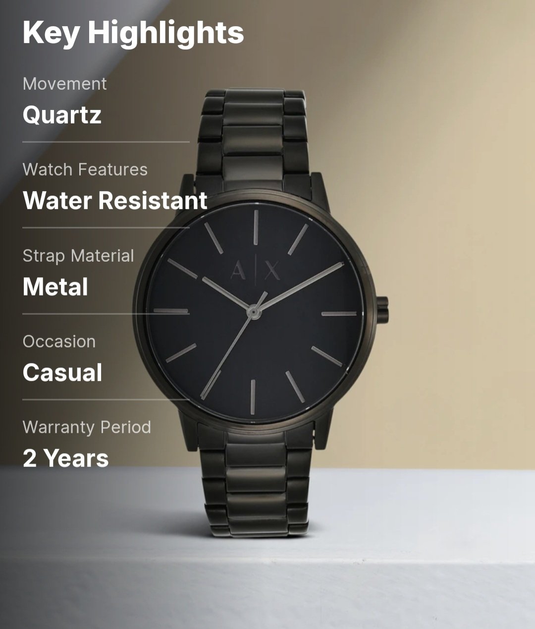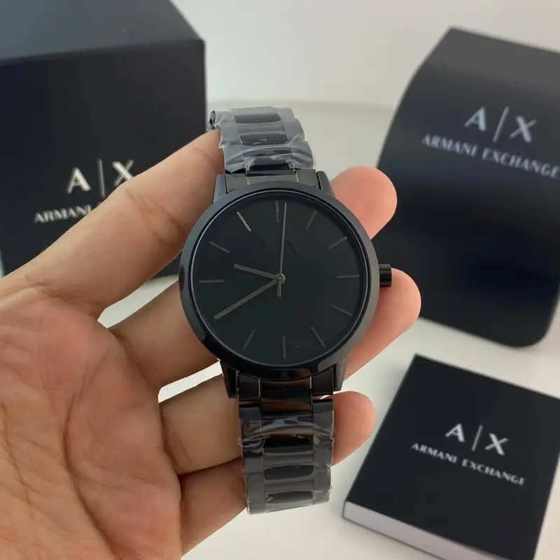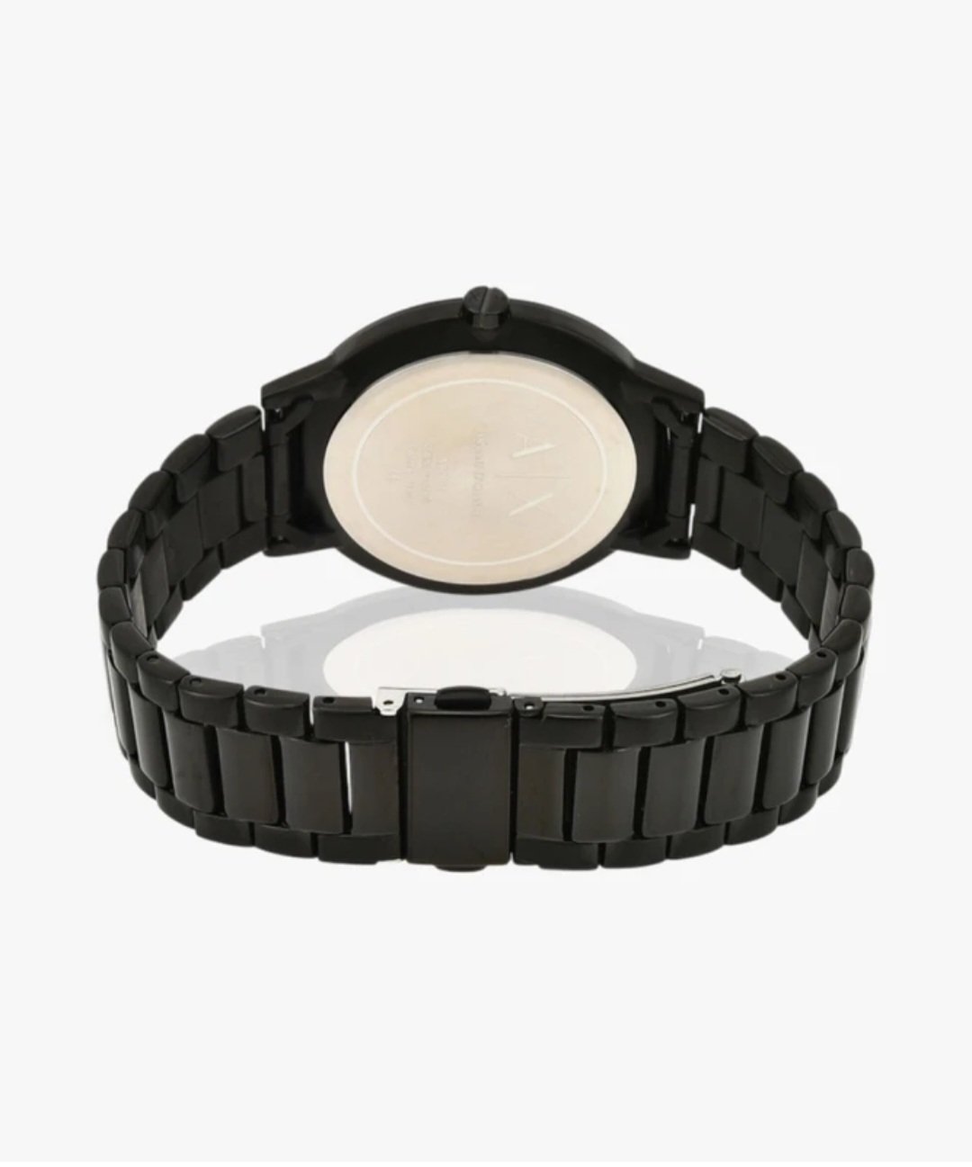 Minimal all-black Armani Exchange watch with clean dial and stainless-steel strap — classy, bold and perfect for everyday luxury style.
