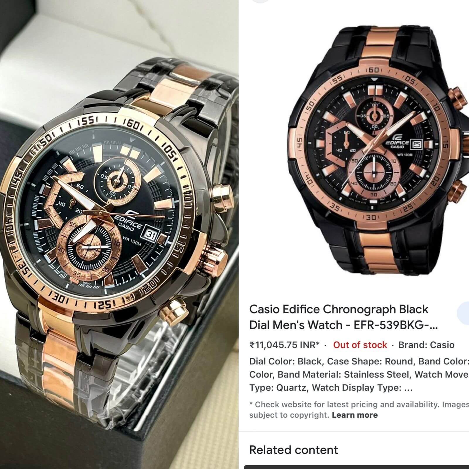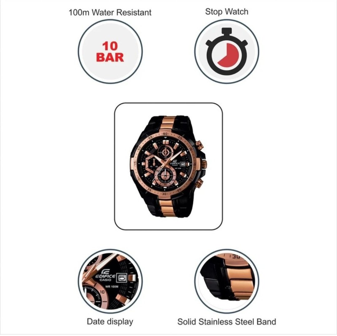 Casio Edifice EF‑539D‑1A2VDF Men’s Chronograph Watch – Black Dial & Rose Gold Finish