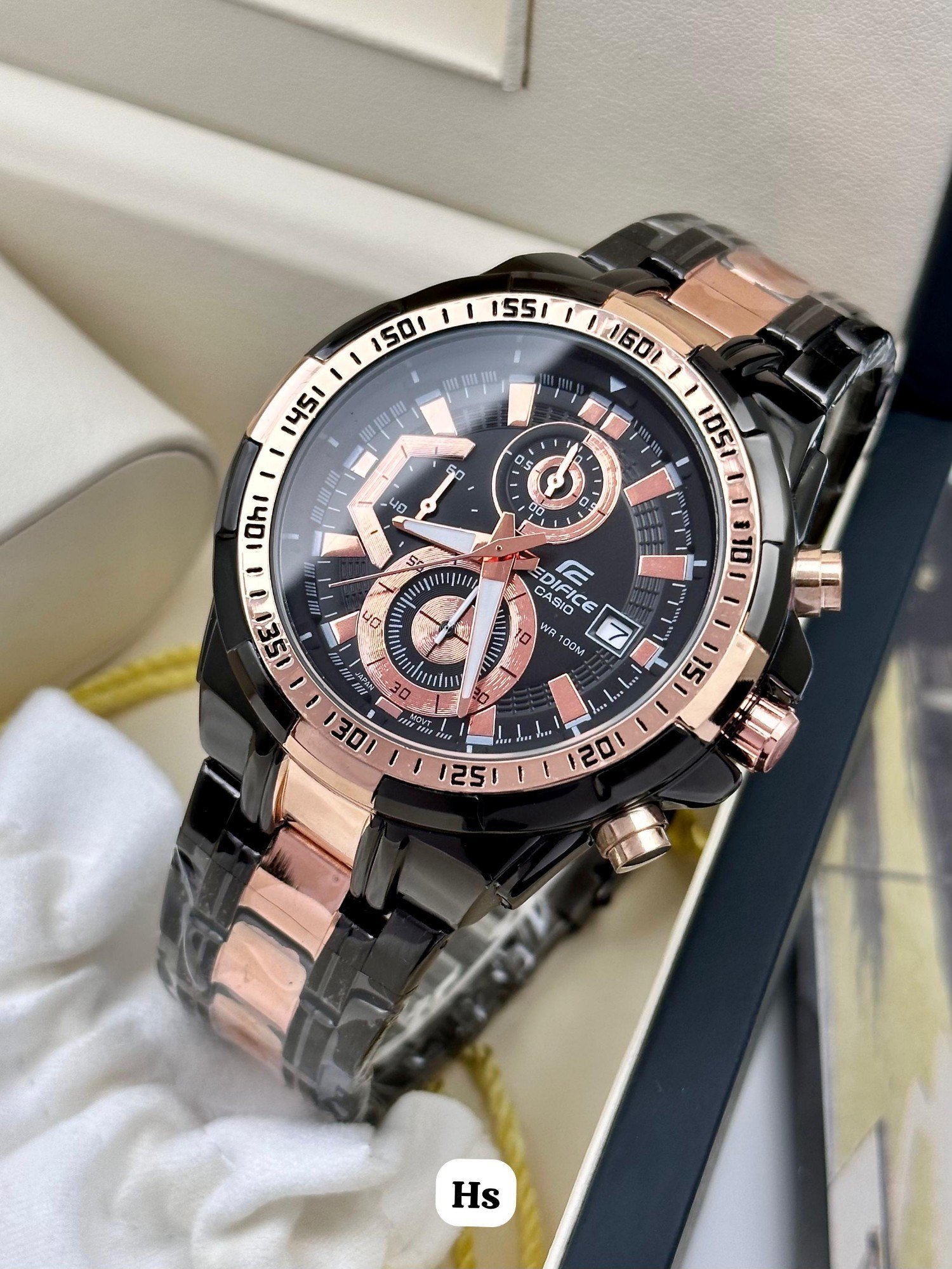 Black dial with rose-gold finish