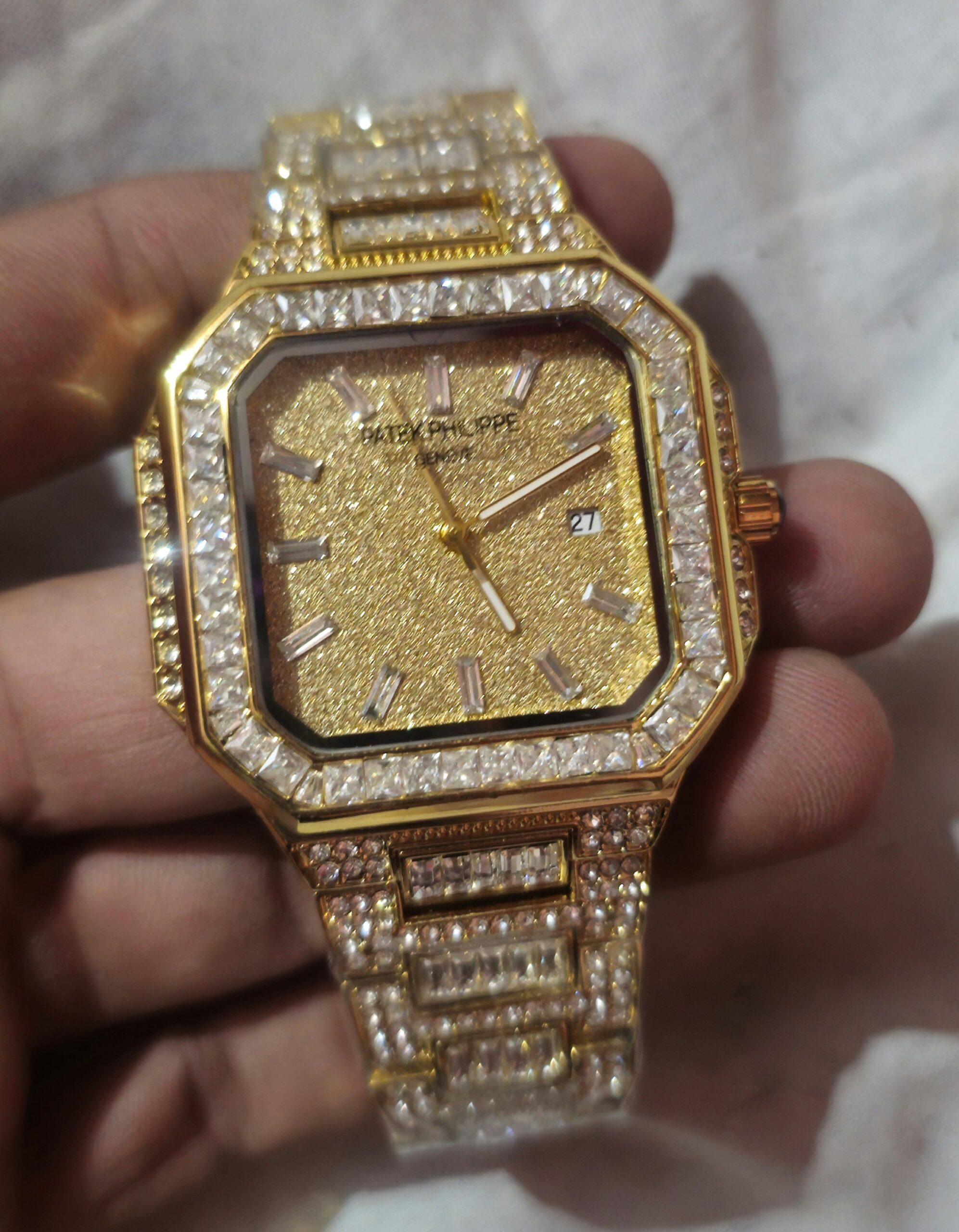 Royal gold glitter dial with crystal bezel for a premium and bold luxury look.