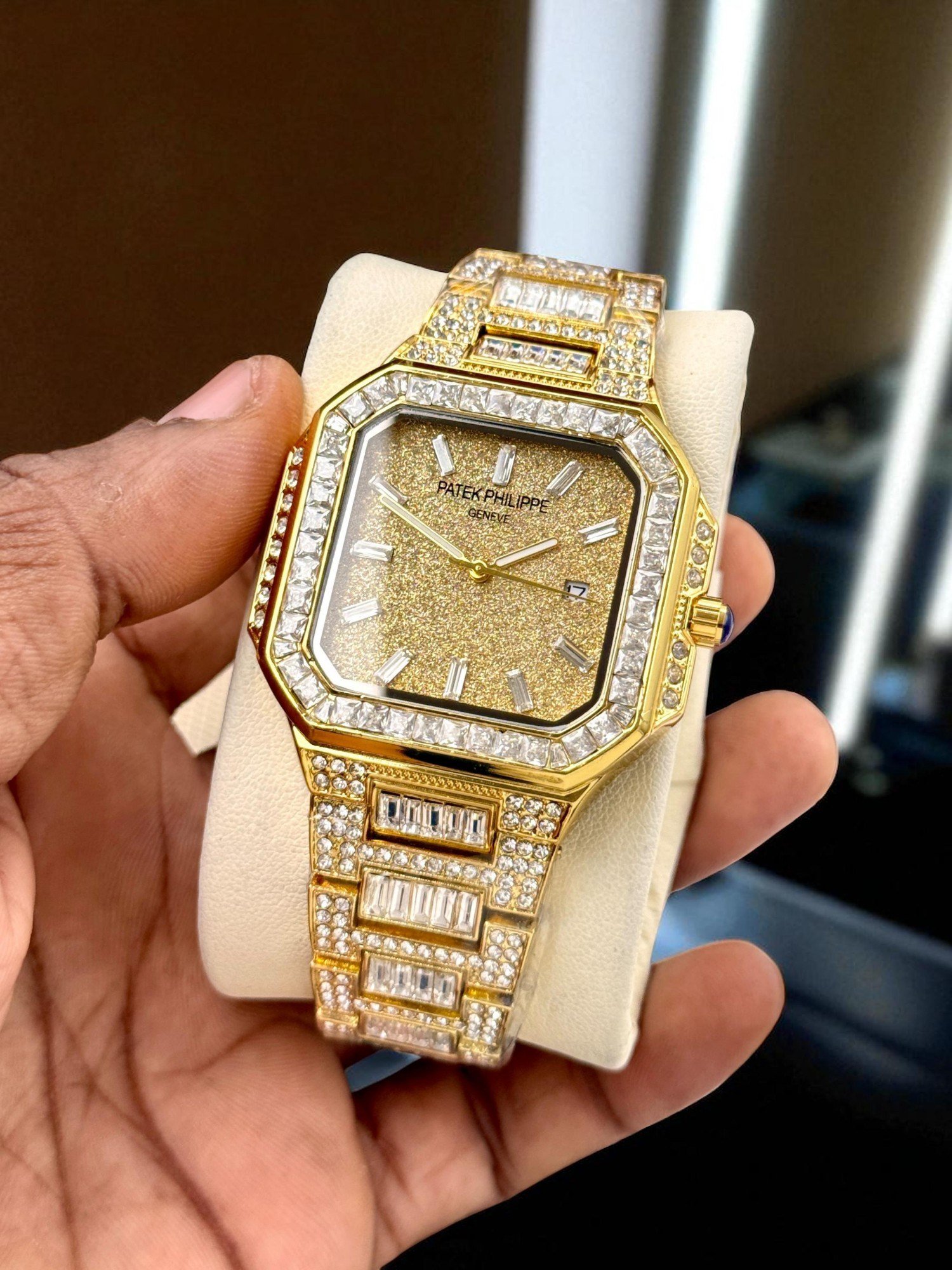 Luxury Gold Square Dial Watch with Crystal Frame (Golden Edition